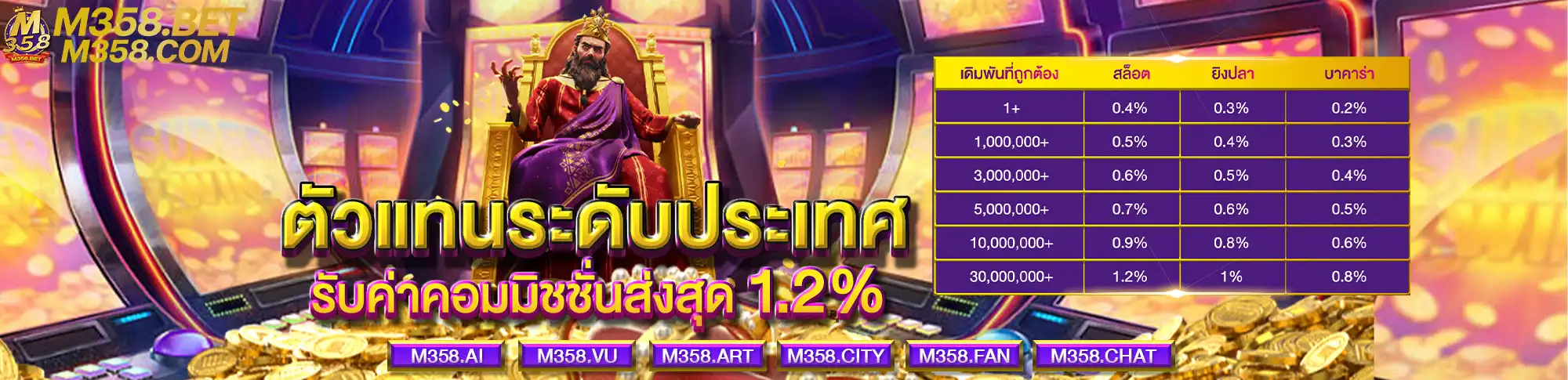 m358 - เว็บพนันออนไลน์ครบวงจรที่ให้บริการเดิมพันกีฬาและคาสิโนตลอด 24 ชั่วโมง พร้อมระบบฝาก-ถอนอัตโนมัติที่รวดเร็วทันใจ ด้วยมาตรฐานระดับสากลและความปลอดภัยสูง ผู้เล่นสามารถเข้าถึงเกมพนันหลากหลายรูปแบบผ่านทั้งคอมพิวเตอร์และมือถือ รองรับทั้ง iOS และ Android อีกทั้งยังมีโปรโมชั่นพิเศษมากมายสำหรับสมาชิกใหม่และสมาชิกปัจจุบัน พร้อมทีมงานคอยให้บริการตลอด 24 ชม.