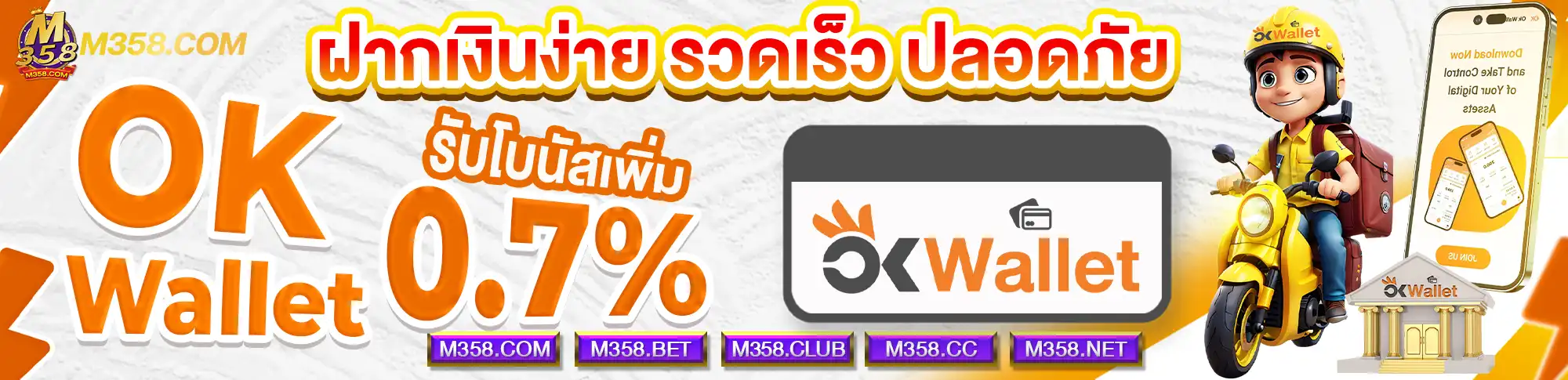 m358 เข้าใจดีว่าการทำธุรกรรมทางการเงินที่สะดวกและรวดเร็วเป็นสิ่งสำคัญสำหรับนักพนันออนไลน์ทุกคน เราจึงได้พัฒนาระบบฝาก-ถอนอัตโนมัติที่ทันสมัยเพื่อให้สมาชิกสามารถทำรายการได้ด้วยตนเองตลอด 24 ชั่วโมง ไม่ต้องรอแอดมินหรือเสียเวลารอนาน